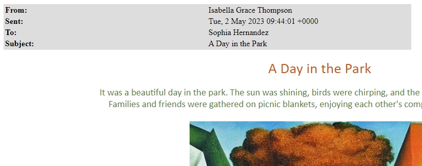 - در نهایت، پیام را در فرمت HTML با استفاده از روش Save ذخیره کنید.