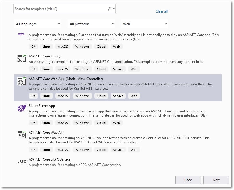 - צור אפליקציית ASP.NET Core Web חדשה (Model-View-Controller) ב-Visual Studio.
