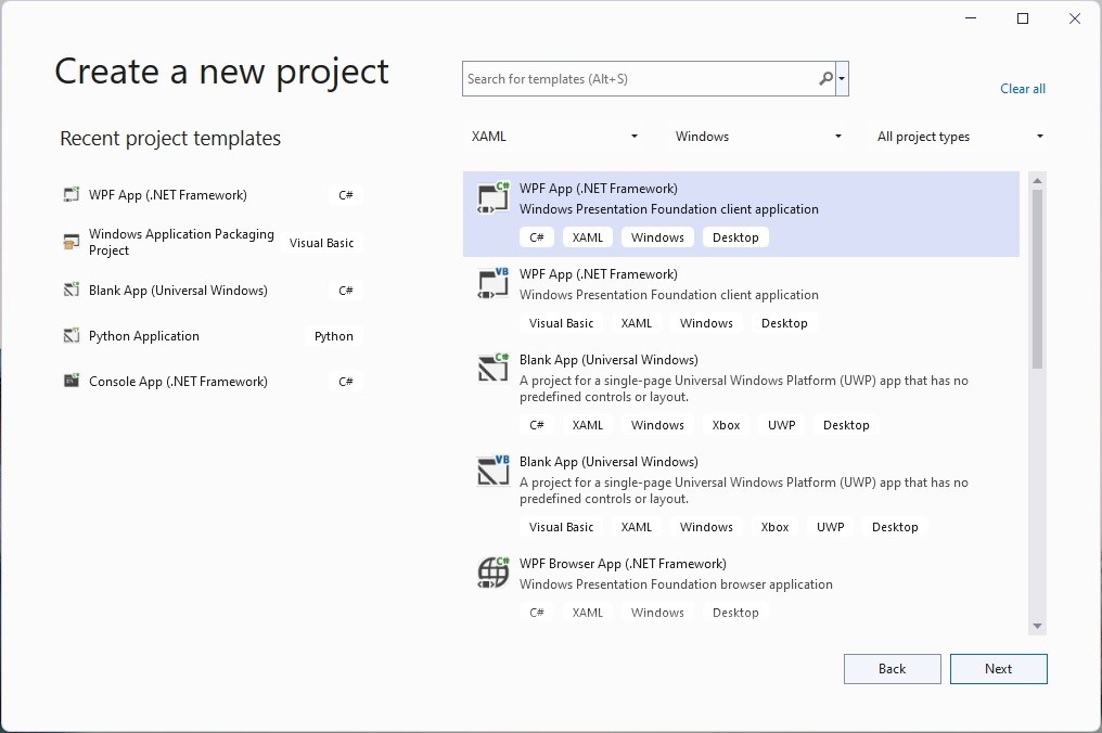 - Pertama, buat proyek baru dan pilih template proyek WPF App (.NET Framework).