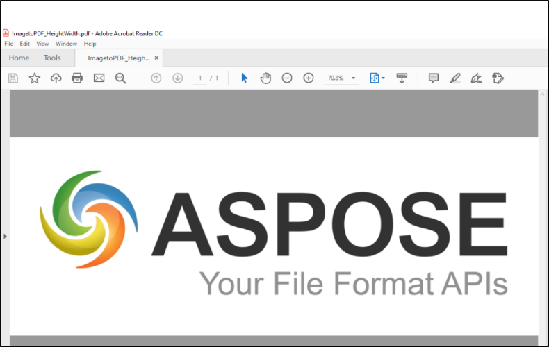 I den här skärmdumpen kan du dock märka att bilden konverteras till en PDF-sida, men standardsidans dimensioner och marginaler tillämpas i det utgående PDF-dokumentet. Aspose.PDF for .NET API låter dig styra siddimensioner och marginaler som hjälper dig att skapa samma PDF-storlek som bildens mått. Låt oss fortsätta att utforska denna funktion: