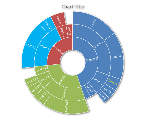 Låt oss anta att du vill ändra färgen på dataetiketten för “Branch 1” i Sunburst-diagrammet som vi tidigare har skapat. För att åstadkomma detta har vi lagt till klasserna IChartDataPointLevelsManager och IChartDataPointLevel för att få tillgång till egenskaper för datapunktsnivåer.