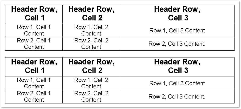 Aşağıdaki ekran görüntüsü, bir Word belgesindeki klonlanmış tabloyu göstermektedir.