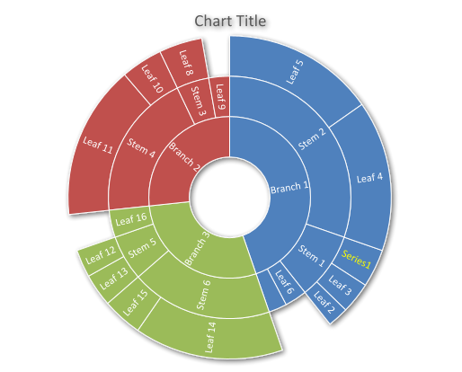 假設您要更改我們之前創建的 Sunburst 圖表中“Branch 1”數據標籤的顏色。為此,我們添加了 IChartDataPointLevelsManager 和 IChartDataPointLevel 類以訪問數據點級別的屬性。